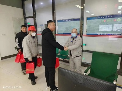 大年初一,中機科技發展(茂名)有限公司開展慰問活動,為春節期間仍然堅守崗位的一線員工送去節日的問候和祝福。值班領導與值班員工一起開展崗位巡檢、設備點檢、隱患排查等工作,將春節期間的安全生產工作和疫情防控工作落到實處。